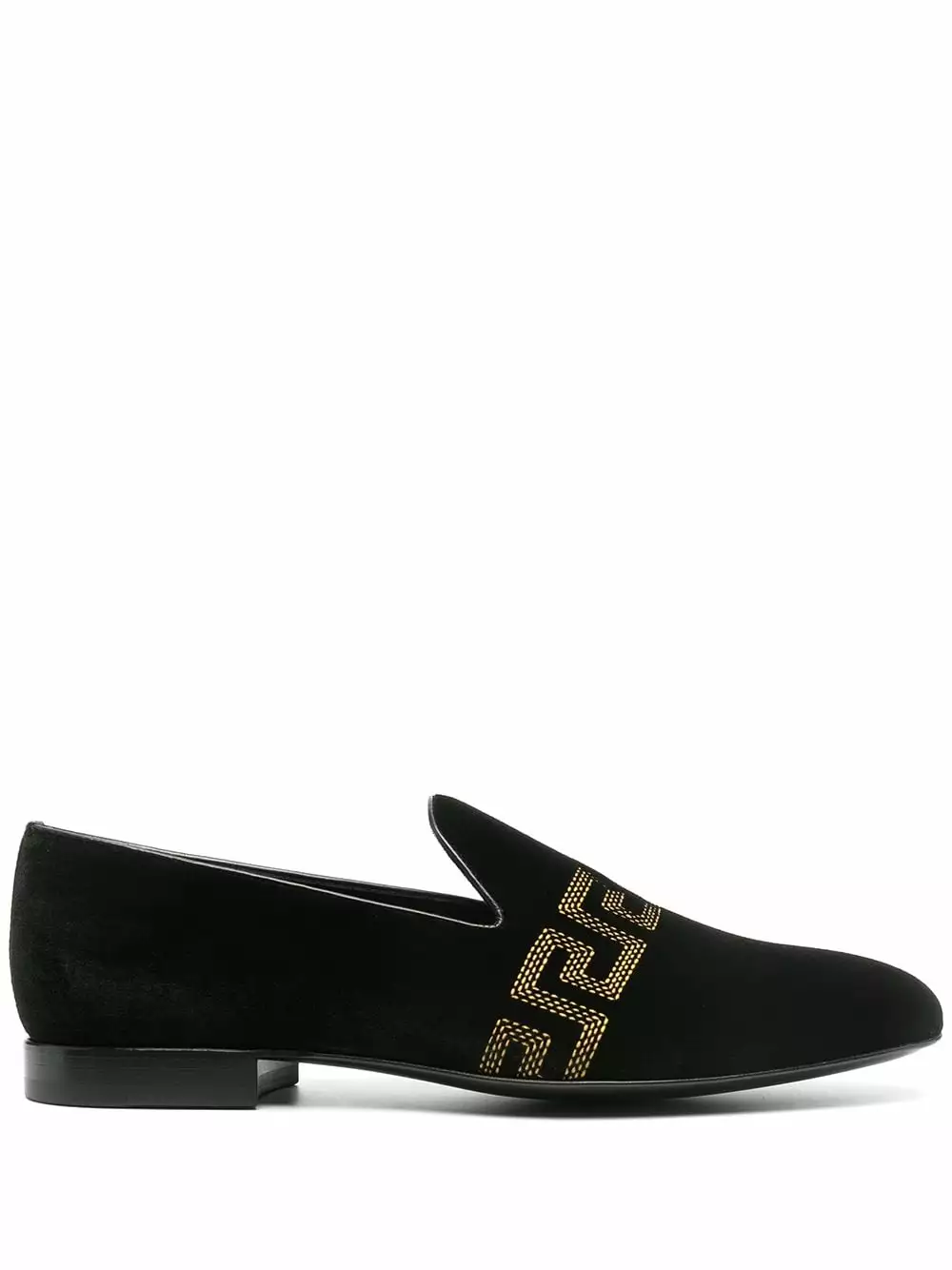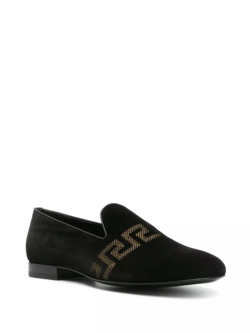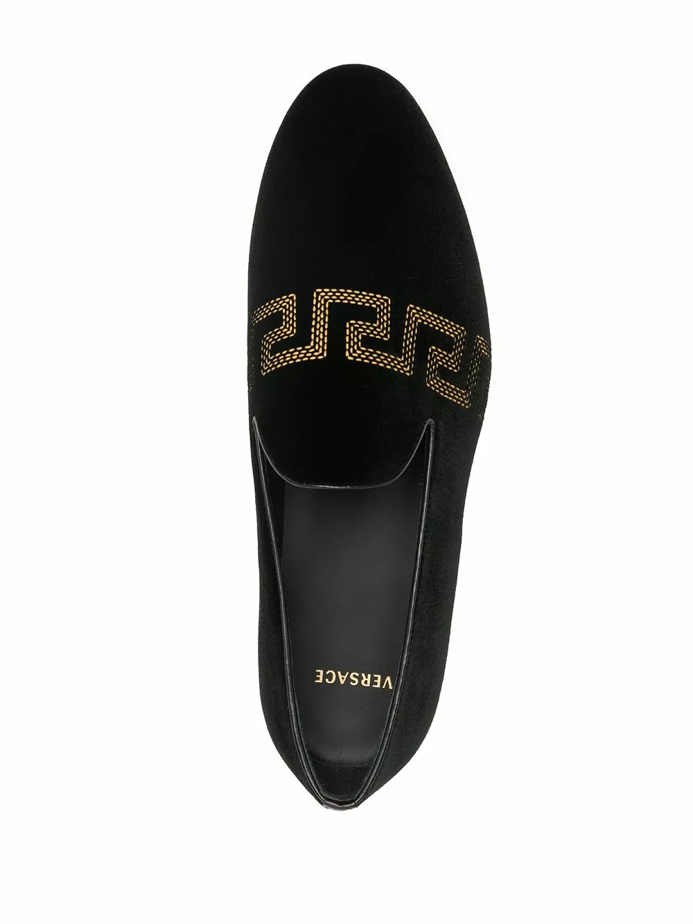 On some occasions, your usual sneakers won’t do. On those days, opt for these black suede loafers from Versace. Note the Greca-embroidered detailing.