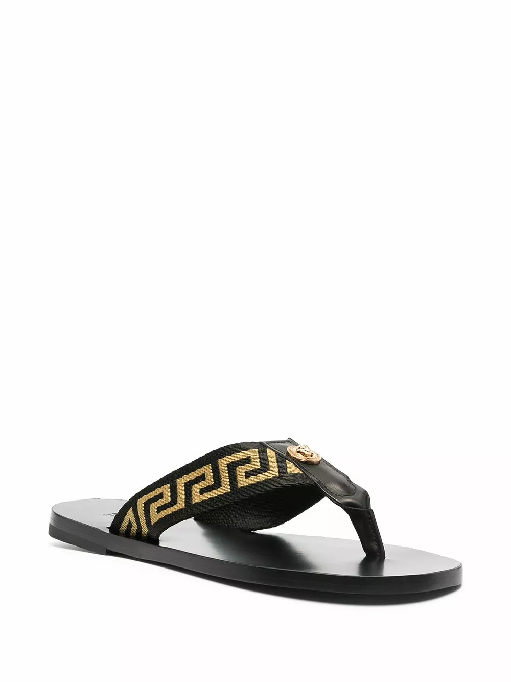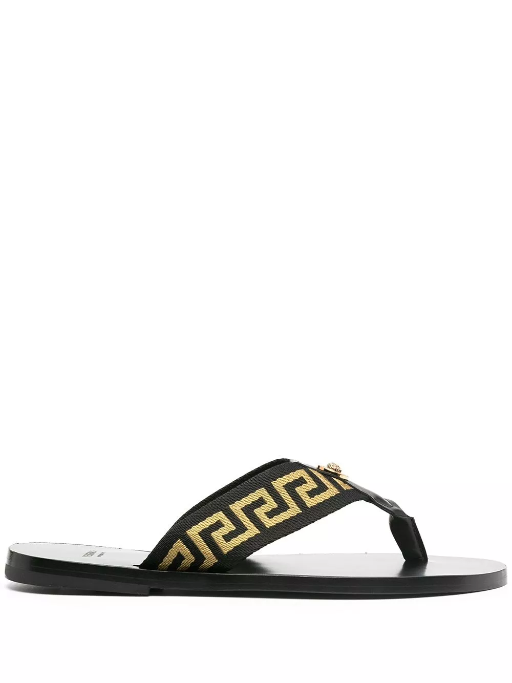 Whether you’re chilling by the poolside or just picking up your daily coffee order, these Greca pattern flip flops from Versace are the perfect pair to accompany you.
