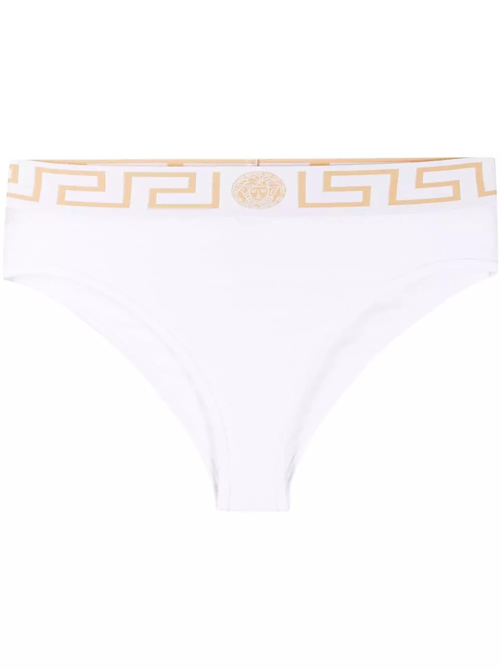 What you wear underneath is as important as what you wear on top. Crafted from white stretch cotton, these Greek Key briefs from Versace will make you feel like the goddess that you are. It all comes from within. Featuring a stretch fit, an elasticated waistband, a Medusa detail and a Greek Key trim. Underwear and lingerie must be tried on over your own garments.