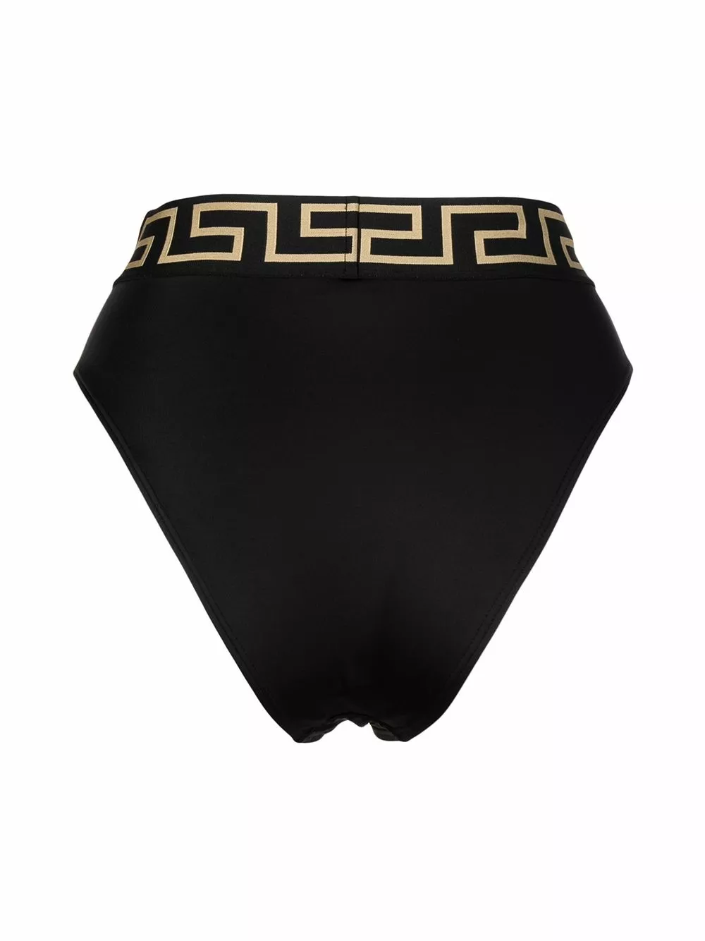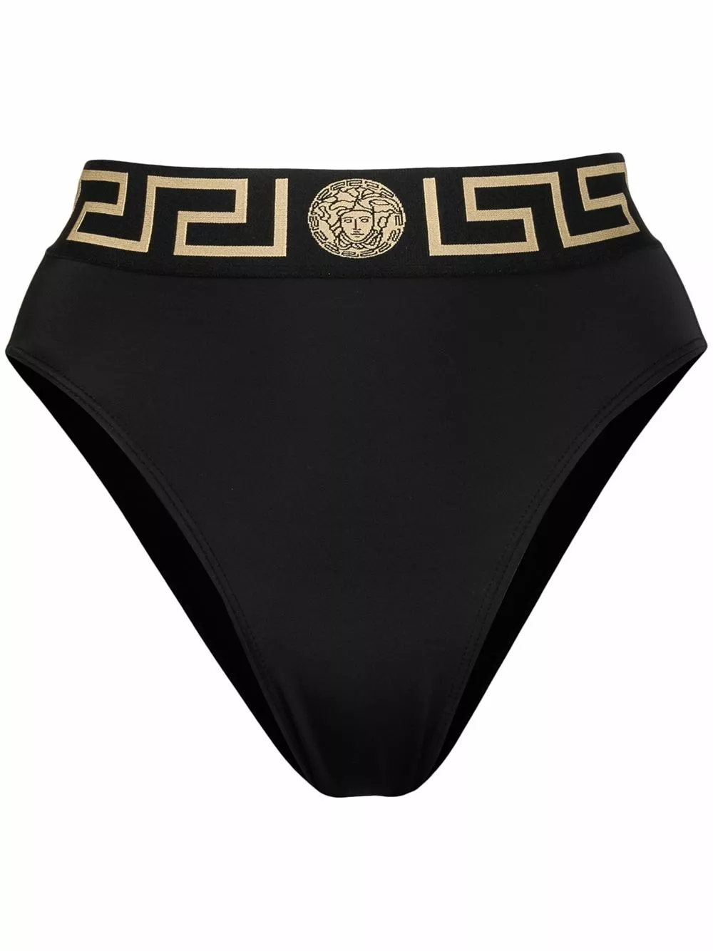 Versace’s iconic house codes make a firm appearance throughout the label’s offering, and their beachwear collection is no exception. Presented in a black hue, these bikini bottoms showcase an elasticated waistband embellished with a Greca pattern and a Medusa Head detail.