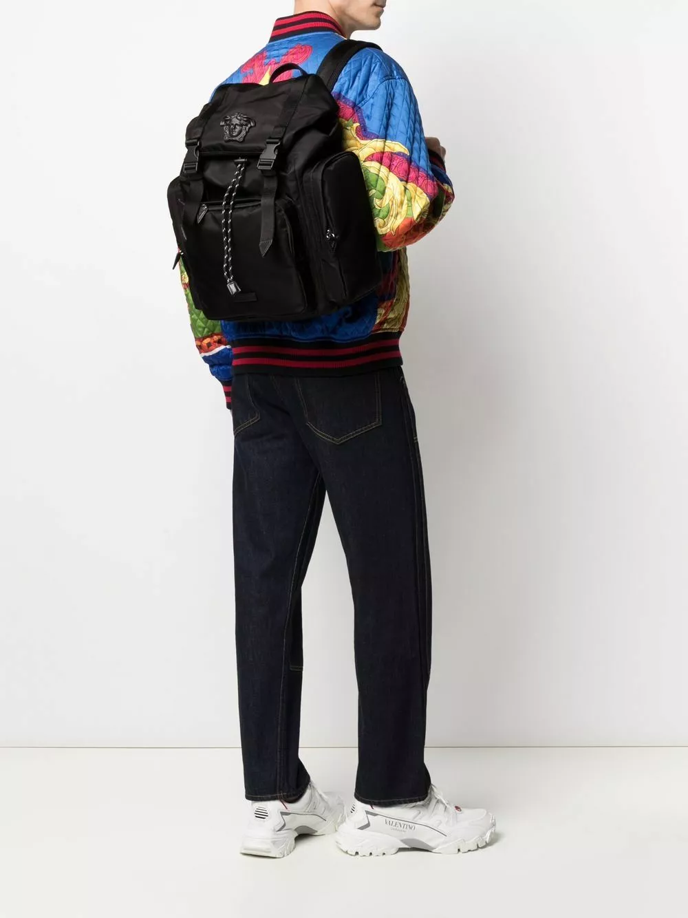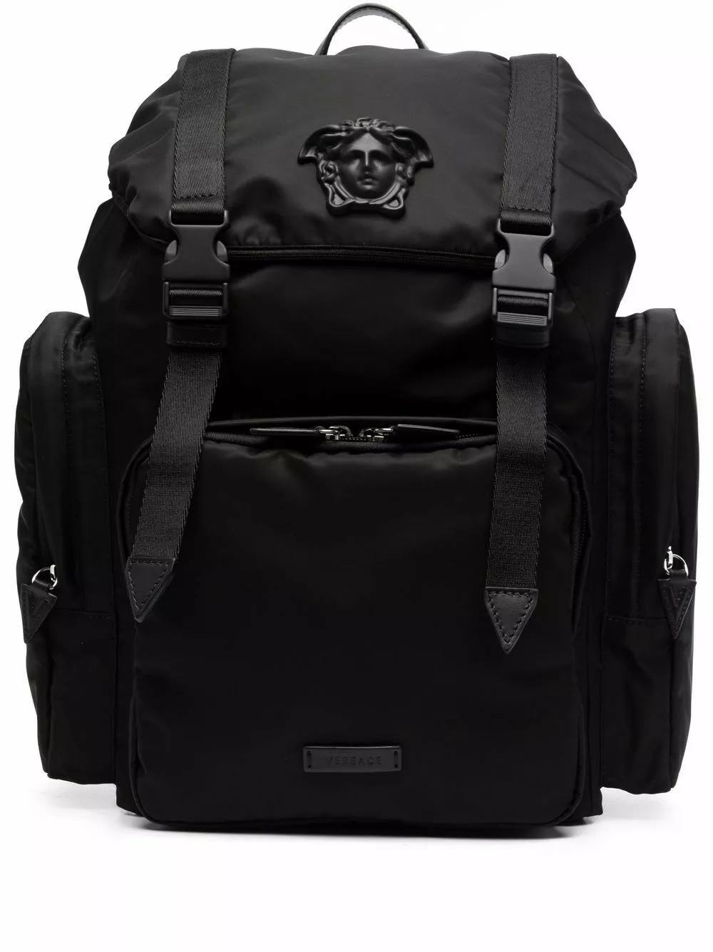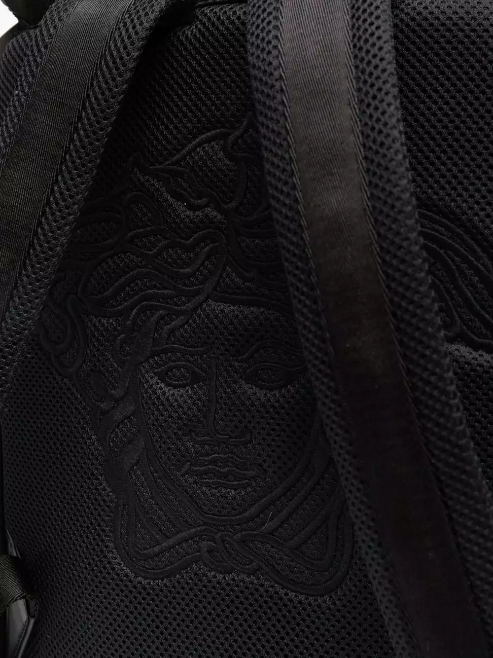 Your everyday essentials are in for a treat. They’re soon to be carried round in style in this sleek all-black La Medusa nylon backpack from Versace. How will they repay you for that?