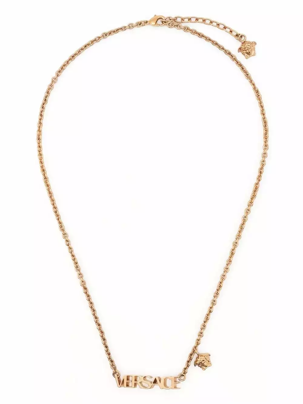 Spelling out the name of the Italian house, this logo-plaque necklace from Versace is imagined in a gold-tone and features two Medusa Head motif plaques.