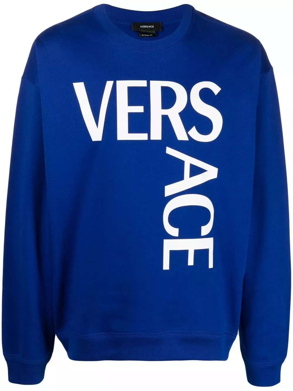 This sweatshirt from Versace is crafted in lapis blue, adding vibrant flair to this laid-back style. It is crafted from soft cotton and punctuated with white logo lettering to the front.