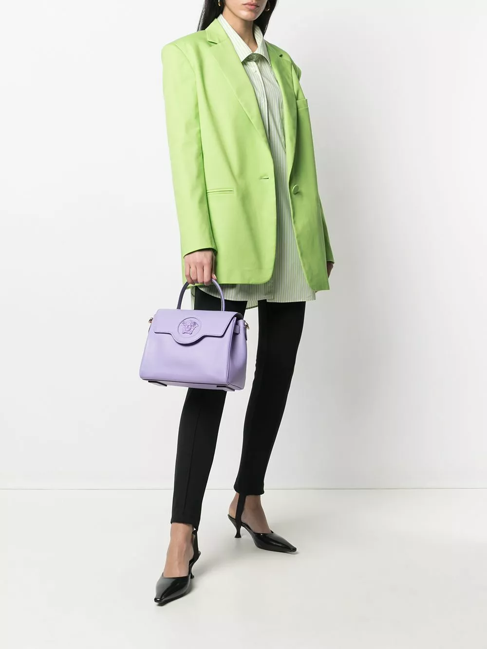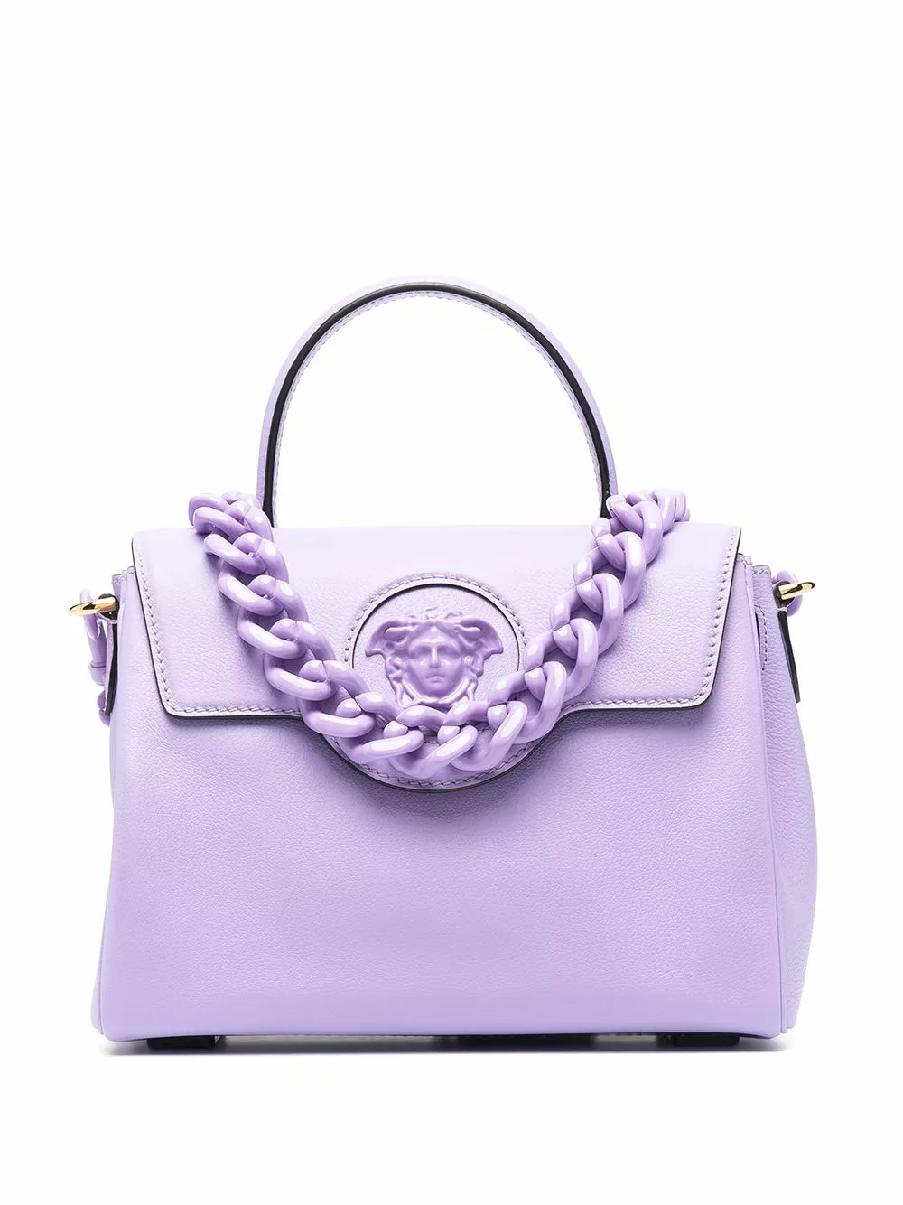 A great day starts with a great bag. So what better way to kickstart your morning than with Versace’s purple La Medusa medium tote bag. Featuring optional leather and chain shoulder straps this Italian crafted beauty is ready to be worn however you see fit.