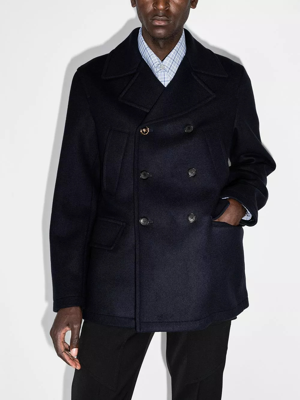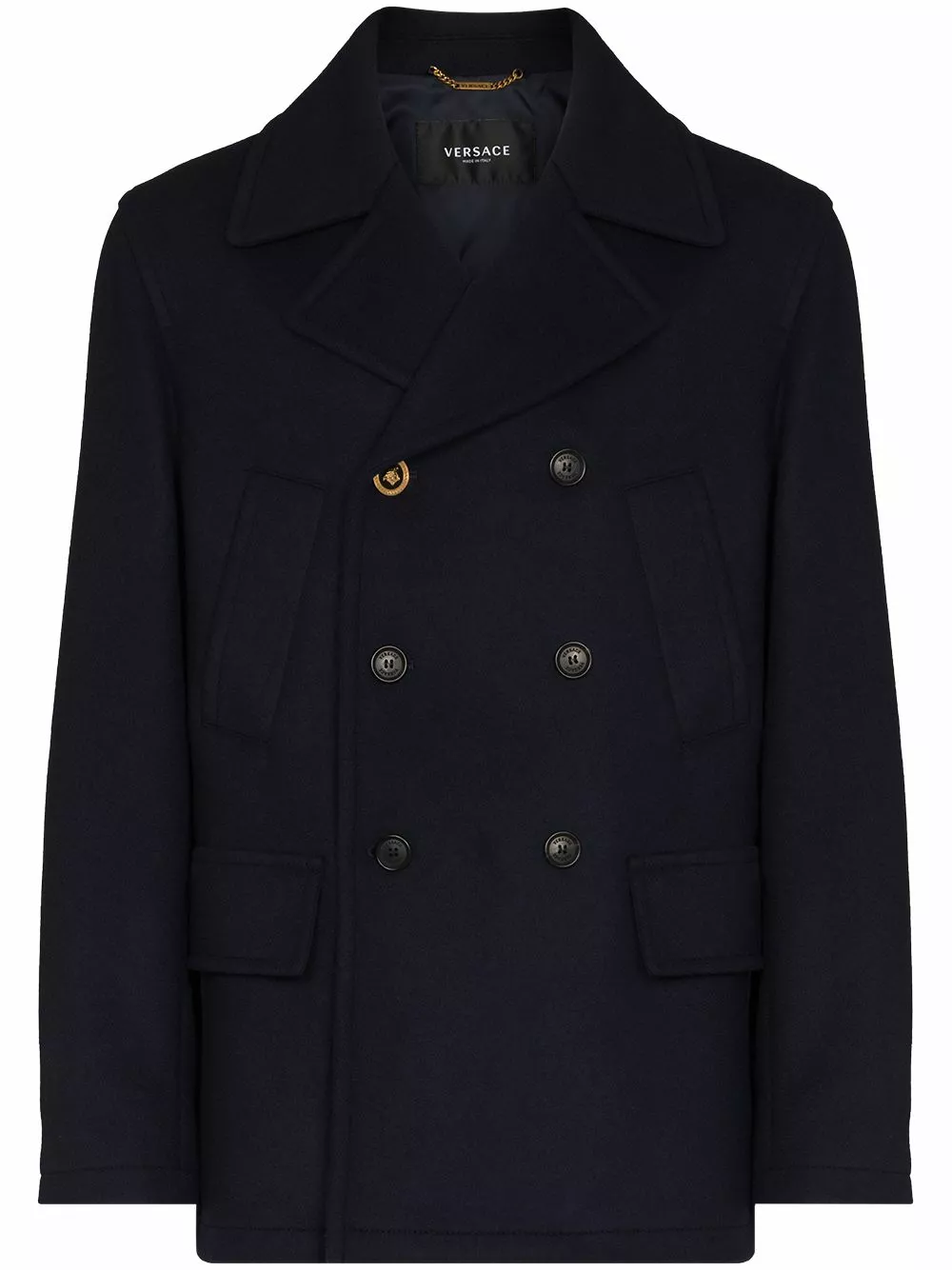 Crafted from a soft blend of virgin wool, this coat from Versace’s AW21 collection features a double-breasted button fastening at the front and a signature Medusa head motif that evokes the brand’s passion for Greek mythology and iconography. With wide notched lapels, this number features slit and flap pockets at the front.
