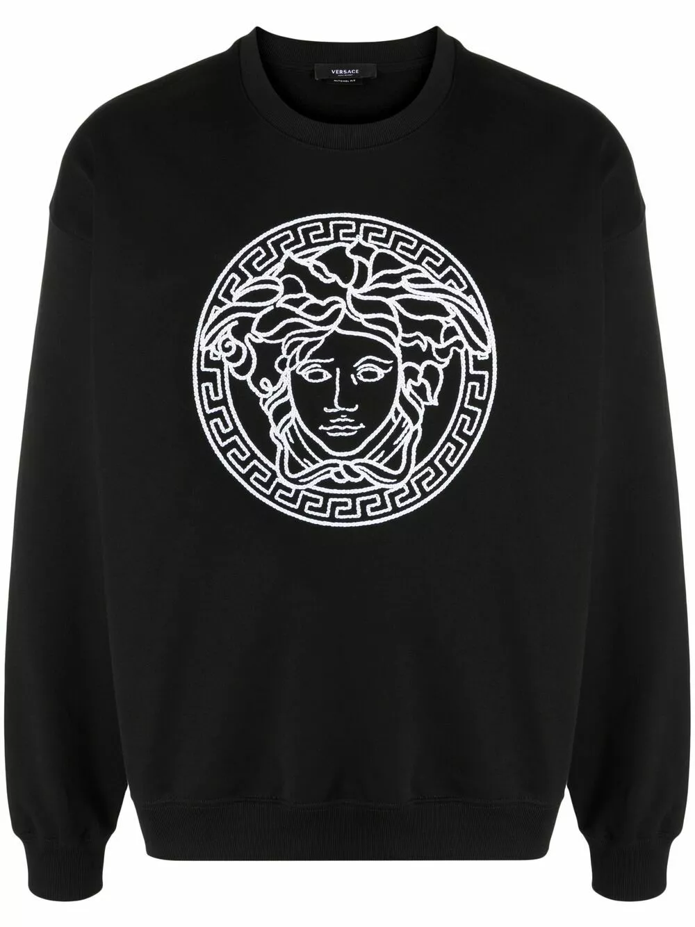 No need for a logo. Crafted from cotton, this Versace sweatshirt features an embroidered Medusa motif at the chest that will show everyone you make great fashion choices. A House signature.