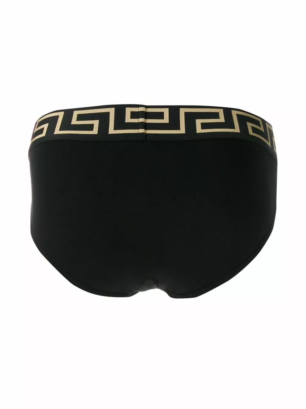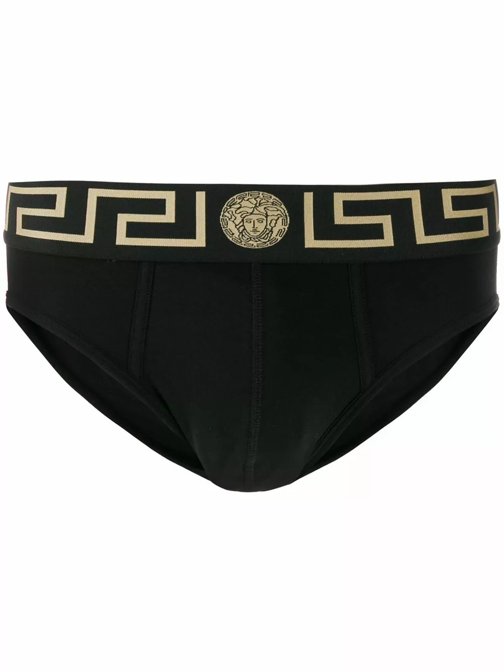 When in doubt, wear your best briefs. Crafted from stretch organic cotton, these black briefs from Versace are detailed with a gold-tone Medusa logo to the waistband that will surprise everyone who has a glance at them.