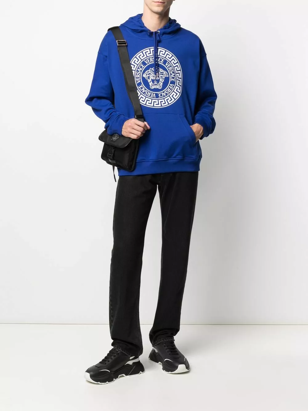 One of the most enticing things about this Medusa Head logo hoodie from Versace has got to be its uncanny ability to blend into our existing wardrobe. Designed from soft cotton, the relaxed shape boasts the label’s signature emblem front and centre across the chest.