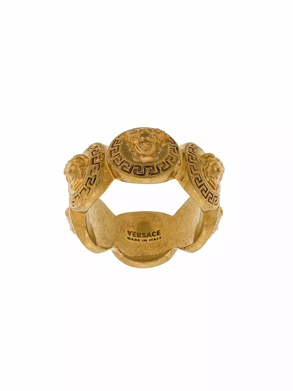 Medusa? I barely knew ‘er! Well maybe it was time you were introduced. This gold-tone brass Medusa motif ring from Versace is glad to make your acquaintance. What do you think? Featuring a Medusa head logo embellishment and Greek Key detailing.