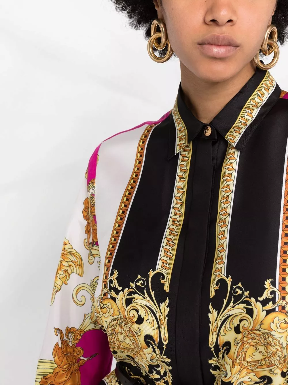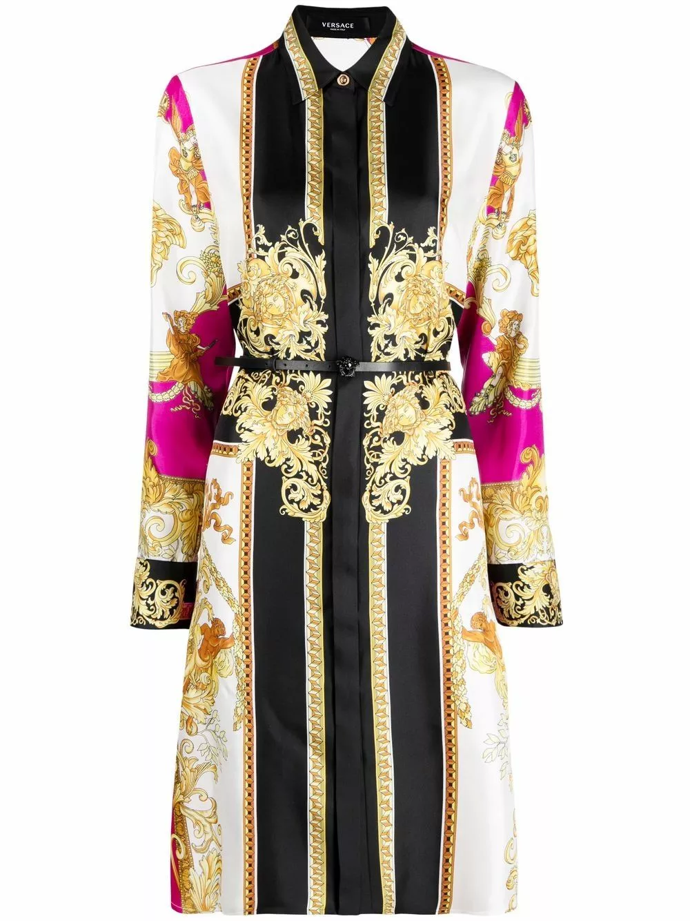 For the AW21 collection, Versace presented strong palettes intended to exude self-confidence. Crafted from silk twill, this shirtdress boasts the new Medusa Renaissance print – a motif that combines the House’s very own Medusa Head with painterly details found in Florentine museums.