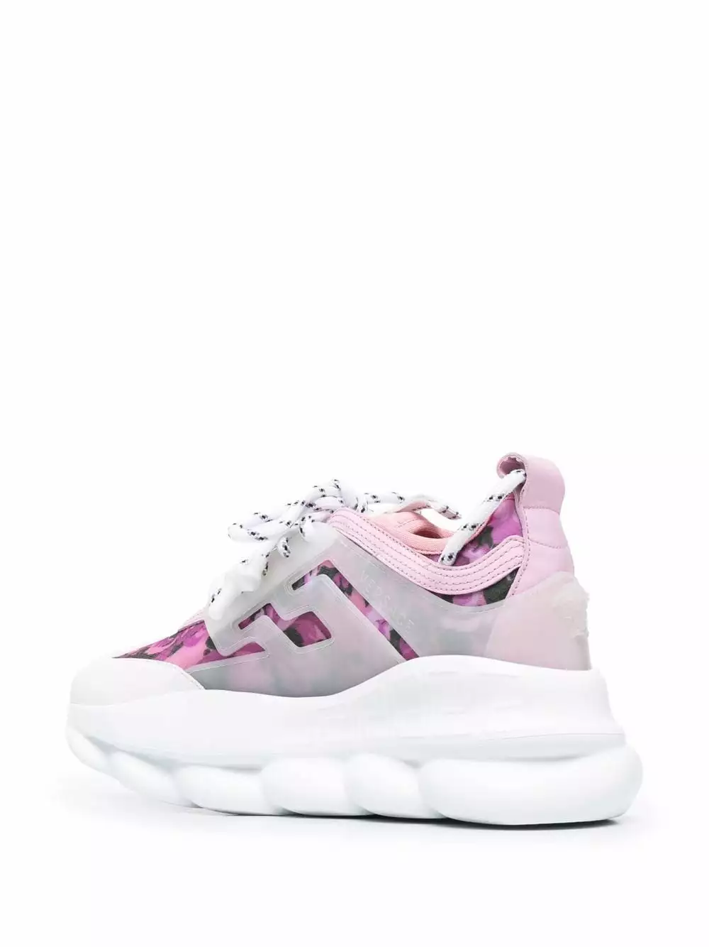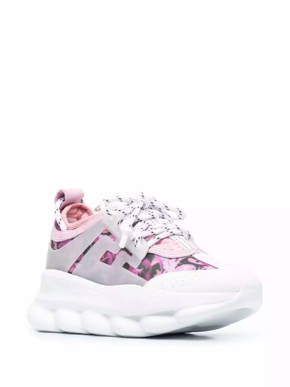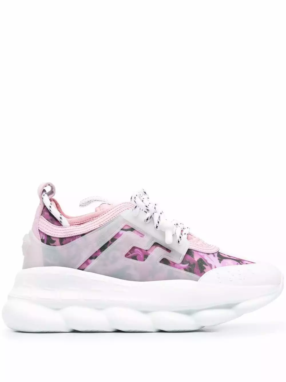 Versace showcases the brand’s more is more approach in this pair of multi-panel sneakers. Featuring a double pull-tab at the opening, Medusa-head motif at the heel and an oversize rubber sole, its two-tone pink and white colourway adds a juxtaposing sense of refinement.