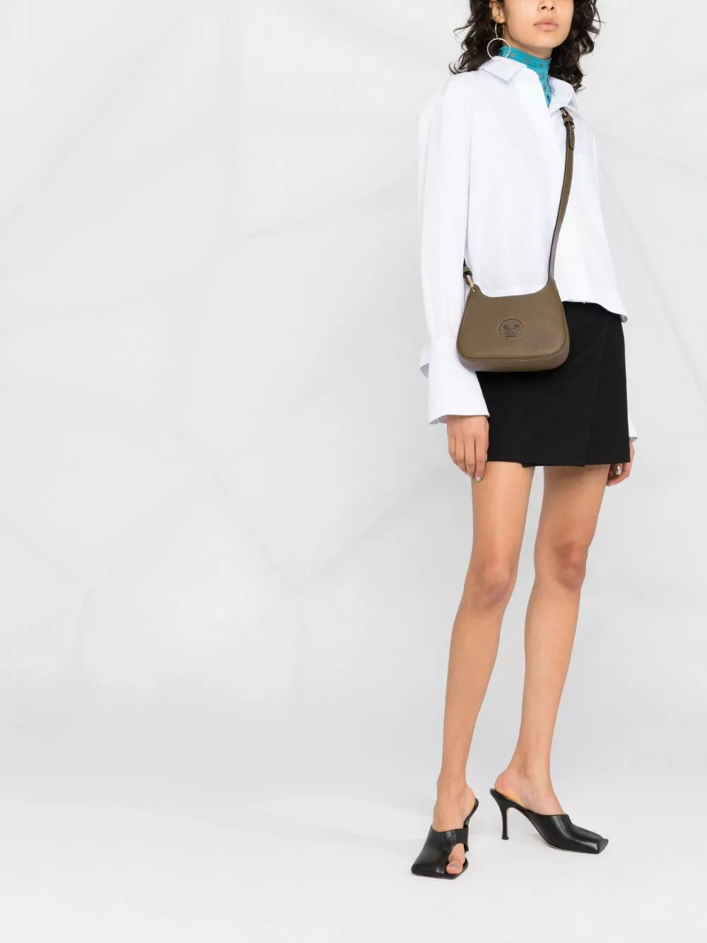 Versace’s La Medusa crossbody bag celebrates the brand’s enduring Medusa Head plaque. Inspired by Greek mythology, it featured on the doors of the brand’s first headquarters in Milan.