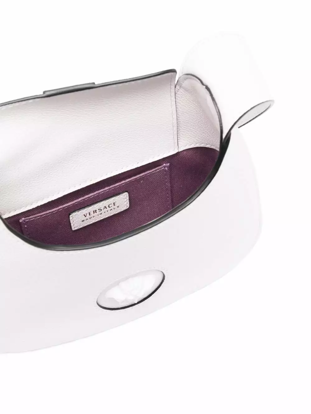 First found on the door’s of Versace’s first headquarters in Milan, the Medusa Head has long featured in the label’s designs. For AW21, it sits atop this soft leather shoulder bag – worn slung over the shoulder or across the body – for an iconic touch.