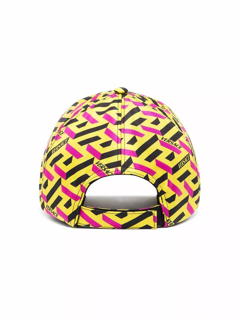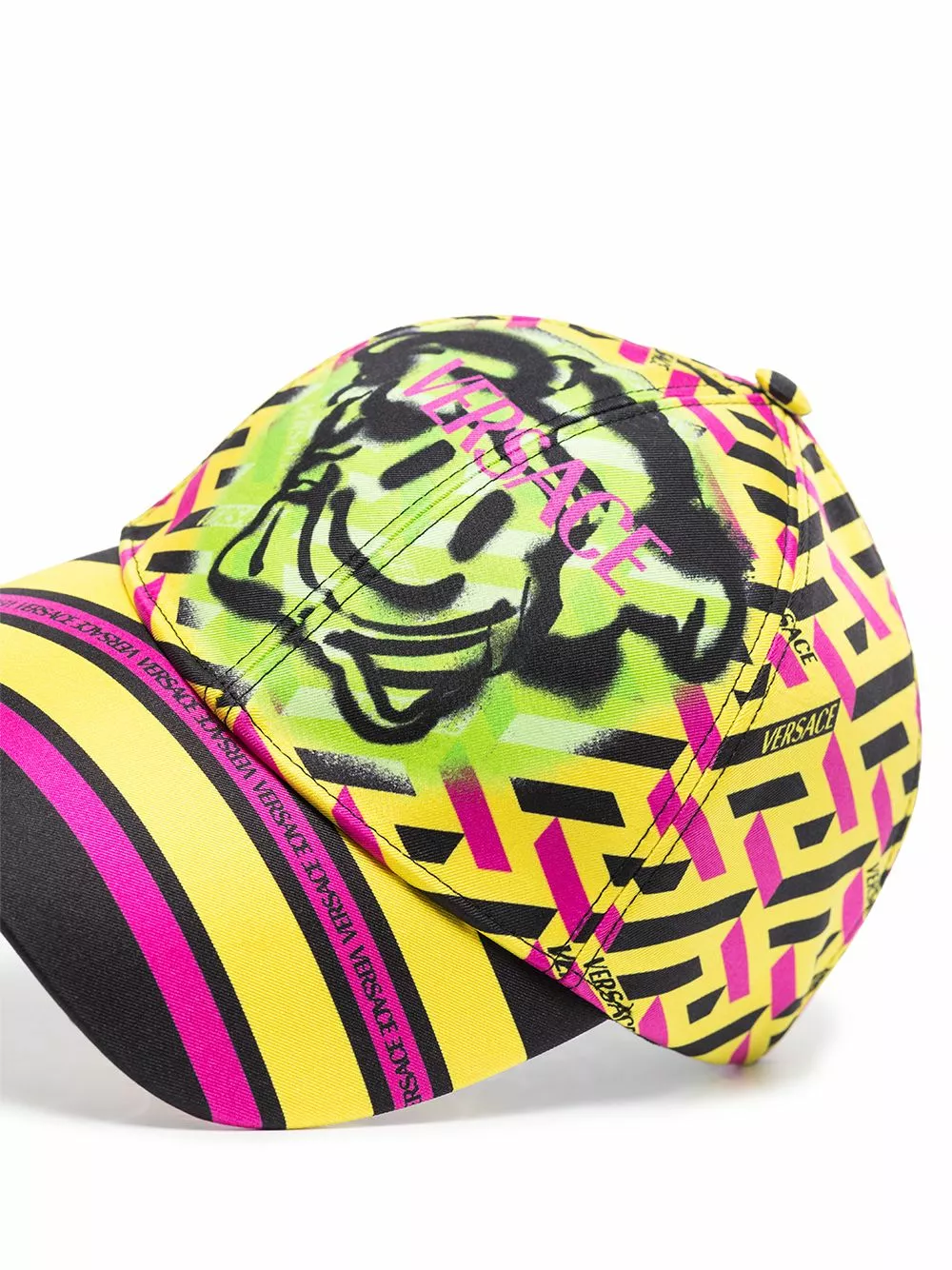 Versace adds whimsy and creative flair to the baseball cap with their latest offering. Crafted from a blend of cotton and silk, this piece boasts a Greca pattern print and the new iteration of the house’s Medusa, the Medusa Smile, imbued playfulness.