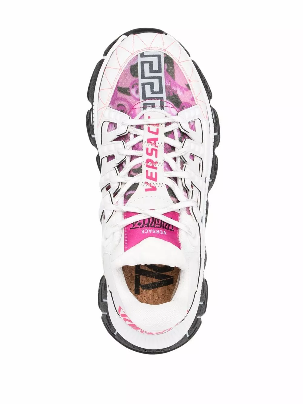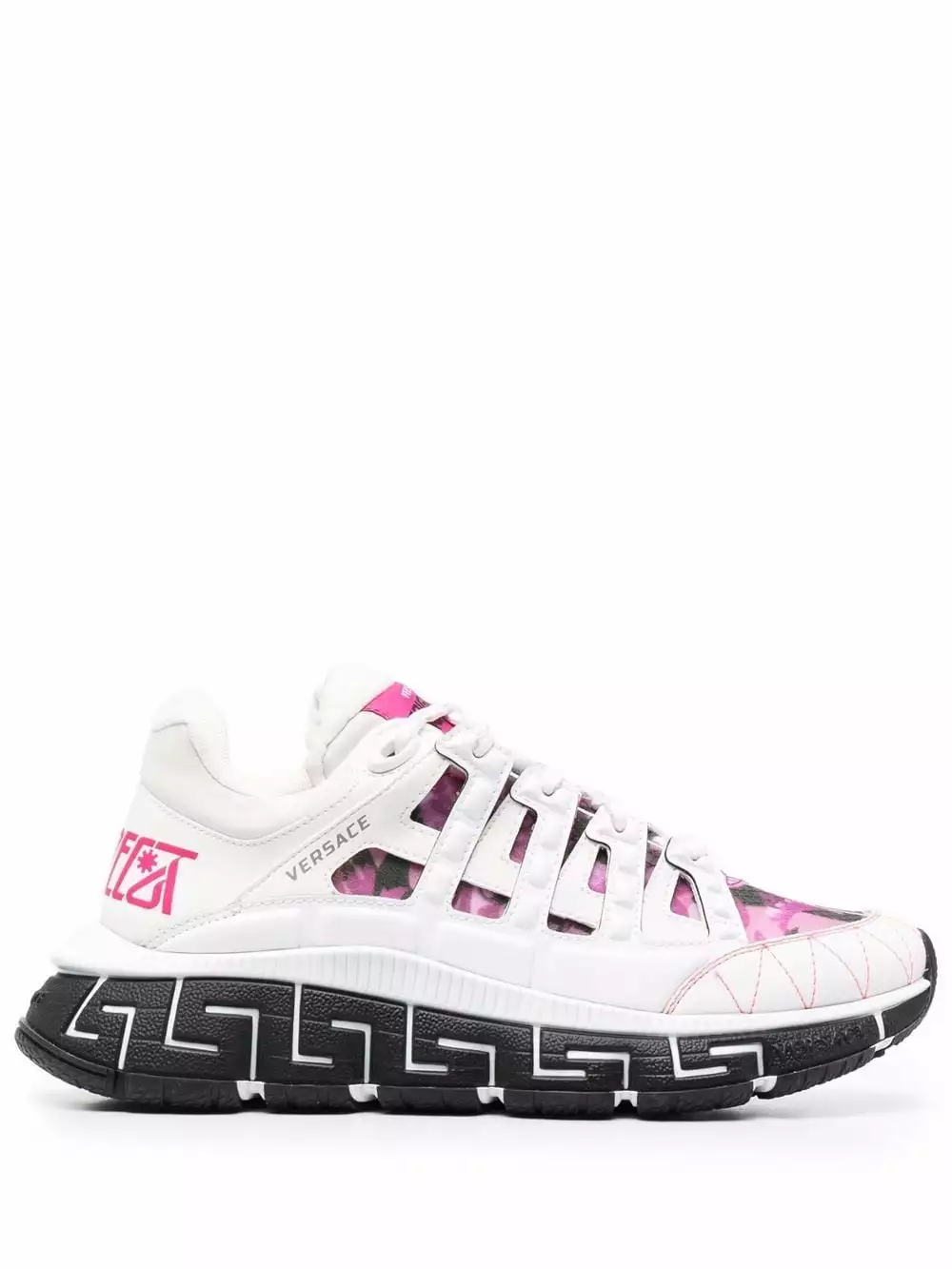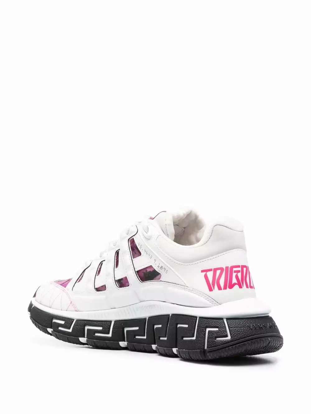 Versace’s new season Trigreca sneakers celebrate the brand’s distinctive DNA with a three-tier Greca motif known as the Greca Cushioning System; a midsole lateral design, a midsole medial motif and a signature Greca tread. Paying homage to the brand’s Milanese roots, the city’s coordinates are printed on the upper.
