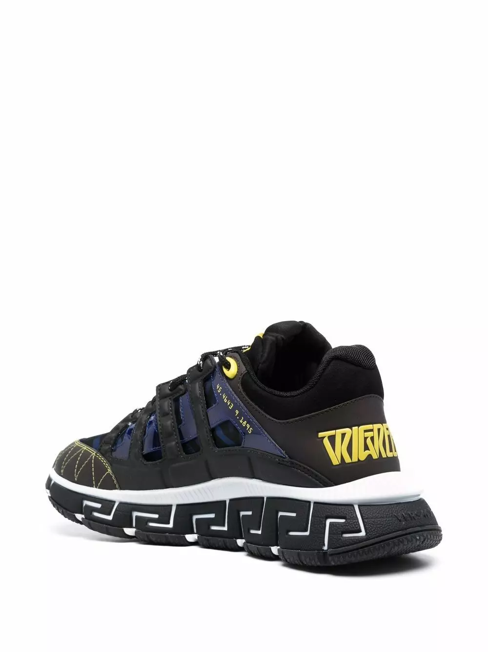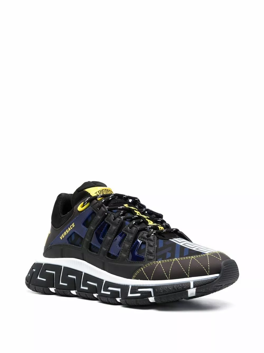 With signature details iconic of the brand, these Trigeca sneakers from Versace bring a new level of innovation and style. In a blue, black and yellow colourway, the pair get their name from the three prominent Greca details at the lateral midsole, medial and the bottom of the outsole.