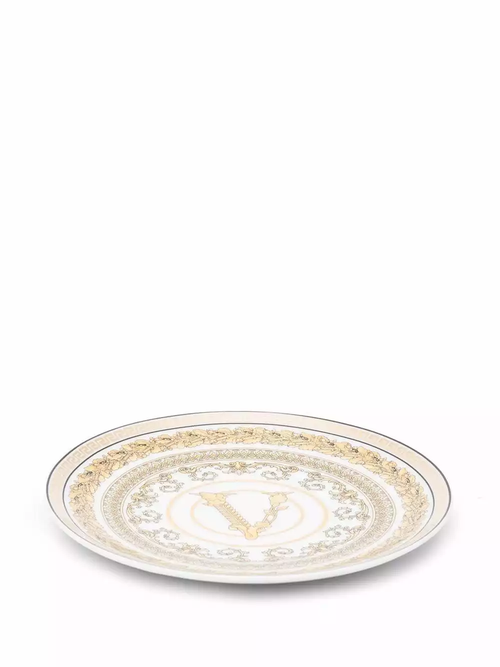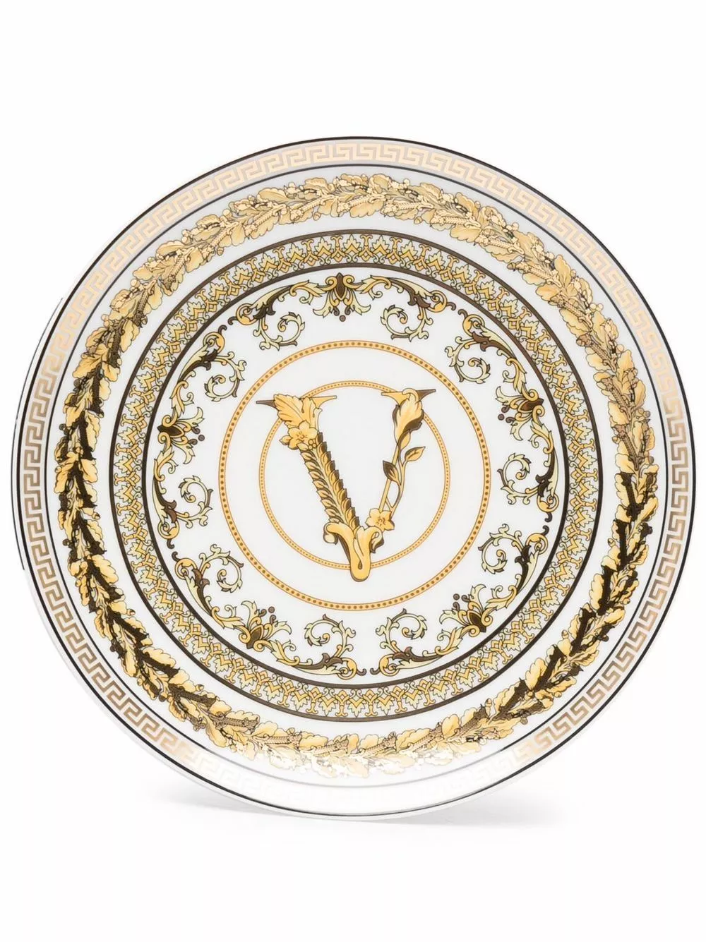 Detailed with a central Barocco V motif, this circular Virtus Gala plate from Versace is a stand out piece from the AW21 collection. Celebrating many of the label’s key themes, it brings together the Greca, Barocco and Medusa motifs in one.