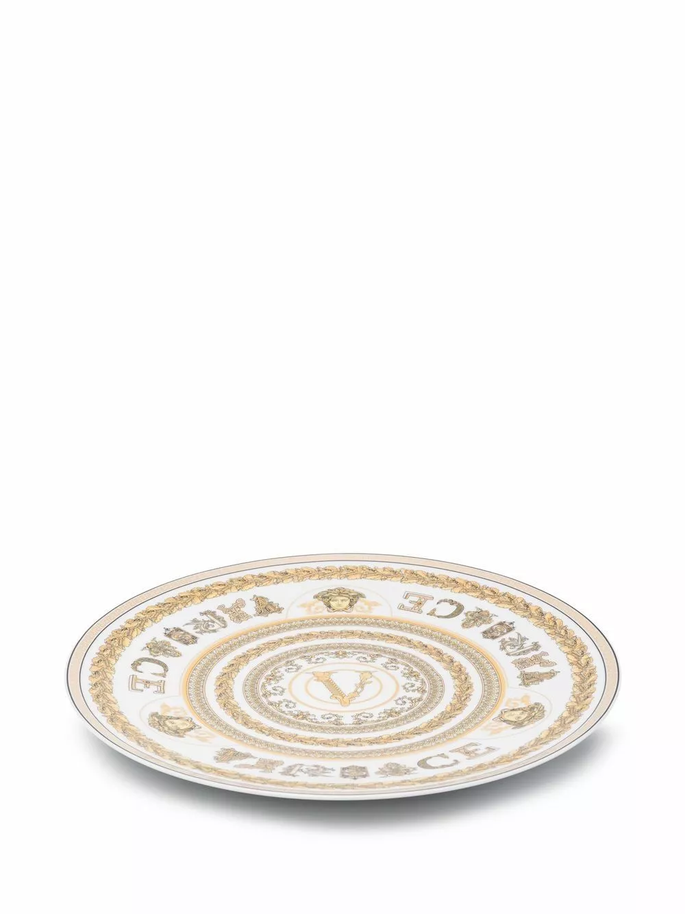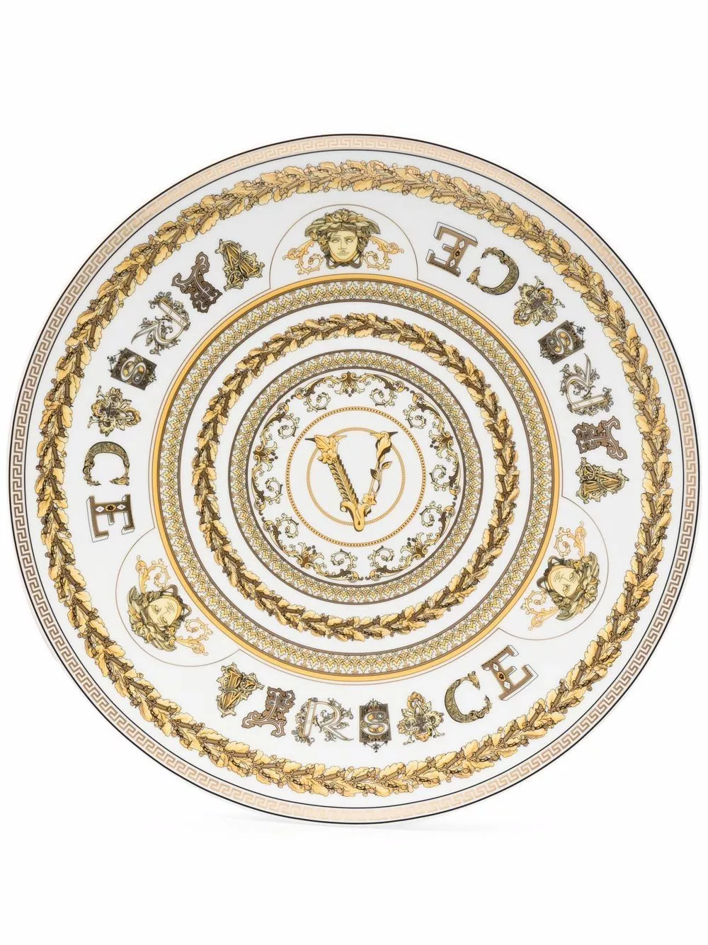 Versace’s white and gold ceramic Virtus Gala 33cm plate has been designed with signature motifs from the beloved fashion house. With a Greca trim, Medusa head motifs and a central Barocco V; this elegant plate will make a great addition to any existing tableware.